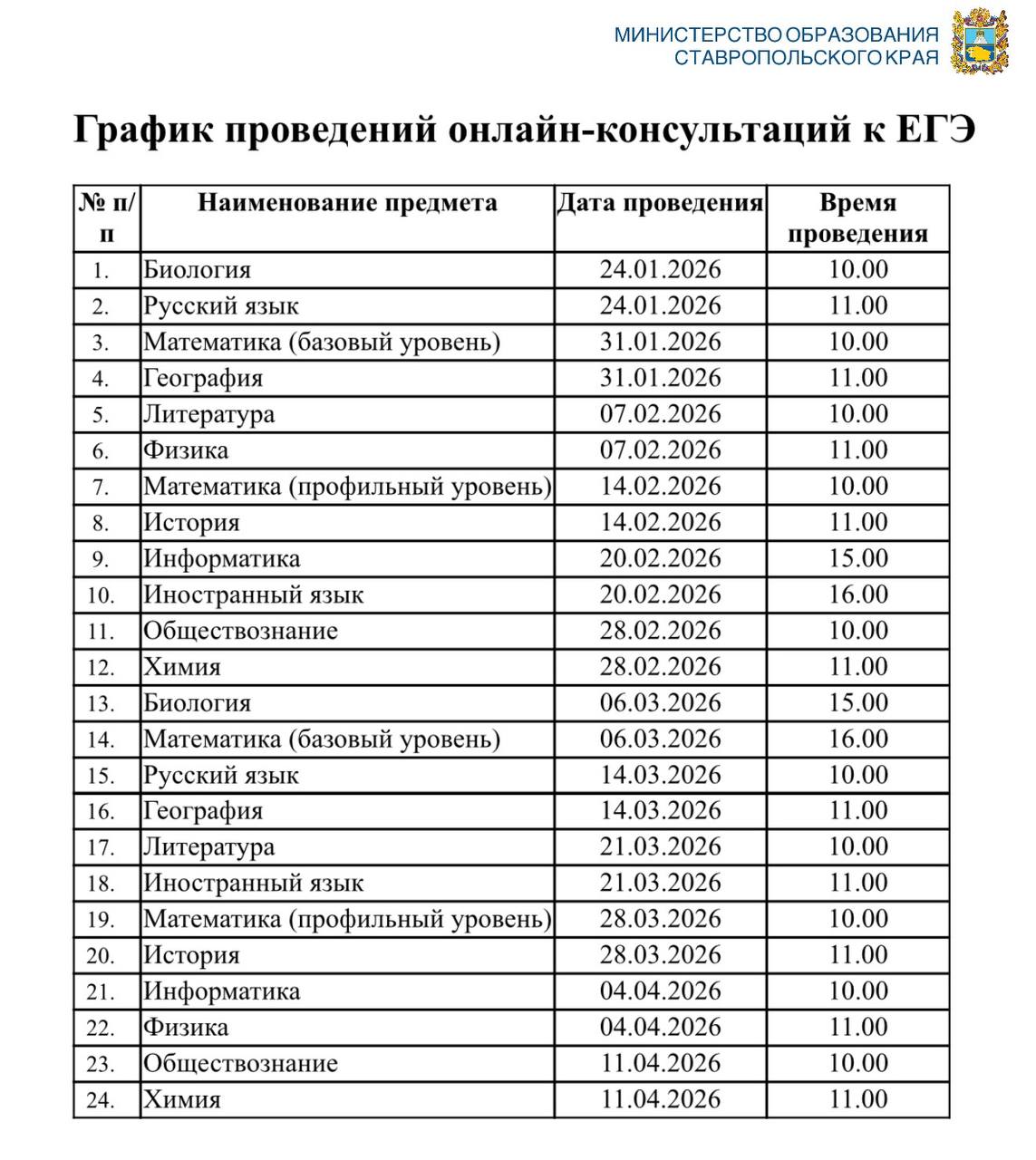 ️24 января стартует серия онлайн-консультаций, посвящённых подготовке к экзаменационной кампании 2026 года
