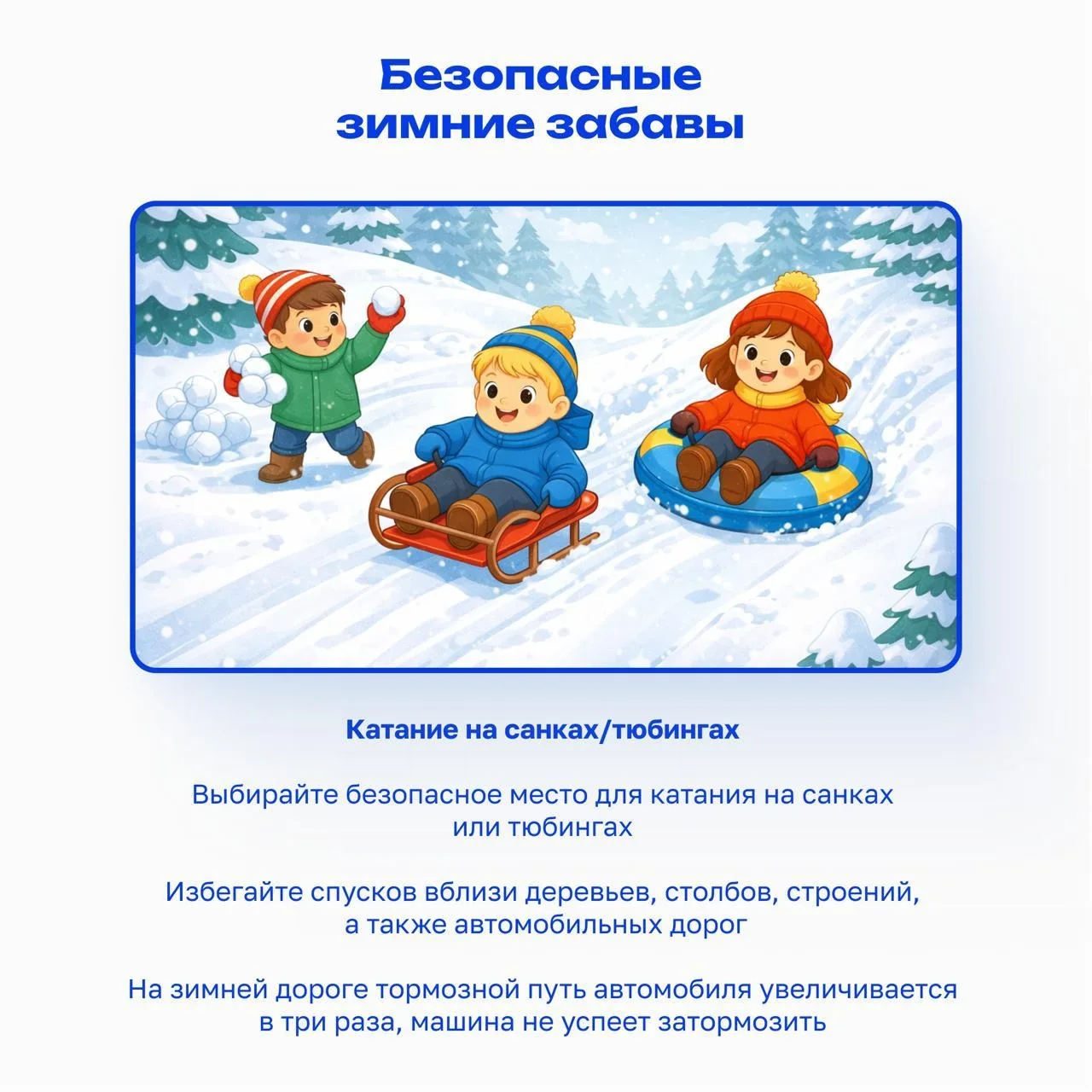 Безопасность зимой на первом месте! Зима - это время активного отдыха, весёлых игр на свежем воздухе и, конечно же, любимых забав: катания на санках, лыжах, коньках.